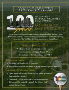 Denver Golf is excited to celebrate the 100th year of Wellshire Golf Course.  Please visit this page for event updates, historical information and view photos of Wellshire’s past 100 years.